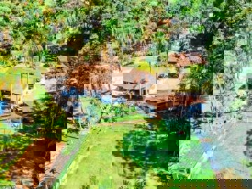 A casa principal, totalmente térrea, oferece ambientes amplos e aconchegantes: