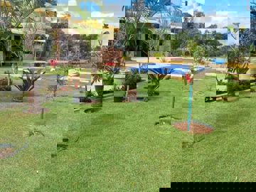 Imovel com excelente acabamento contendo, 2 dormitórios, sala, cozinha, 3 banheiros sendo 1 na parte externa, área de serviço, na parte externa contamos com uma ampla área gourmet, com churrasqueira e forno de pizza e uma ampla piscina, poço artesiano com muita água, tereno com ótima topografia, e garagem para 6 carros .