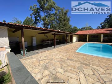 Área total de 32 mil metros contendo uma área de lazer completa, piscina, campo de futebol, salão de jogos, playground e lago, o sítio conta com uma casa sede contendo 4 dormitórios sendo 1 suíte, sala de Tv, jantar e estar, banheiro social e área de serviço.